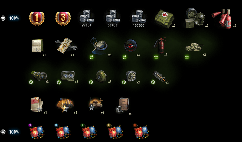 Техника из всех контейнеров разделена на три этапа. Всё просто: для перехода на следующий этап необходимо собрать все танки VIII–X уровней из предыдущего.