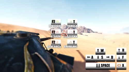 - R, F - клавиши круиз-контроля (для всех танков: 3 передачи вперёд и 2 назад);