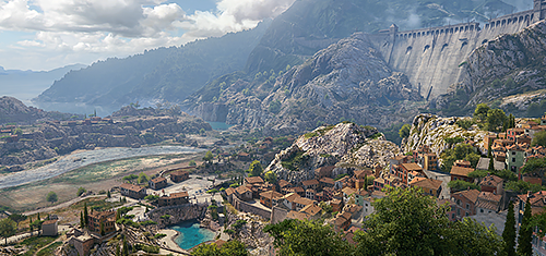 Эта карта очень атмосферная и очень красивая, но играть на ней не так-то просто. Если посмотреть на миникарту, то можно увидеть две возвышенности, расположенные по краям этой карты, которые застроены многочисленными домами. Между домов есть проемы с которых можно пострелять по противоположной стороне. Посередине между холмами есть небольшой городок и поле, в нем есть кусты и даже камни за которыми можно спрятаться легким танкам.