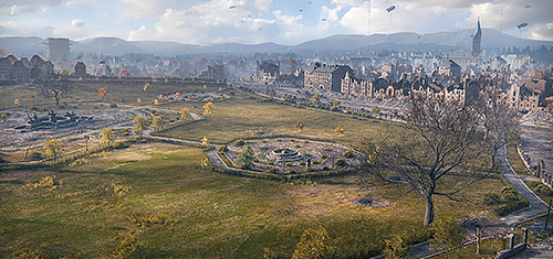 Концентрическая система улиц города, густые деревья и кусты в парке позволяют производить скрытые манёвры и оперативно перебрасывать резервы. Действия артиллерии в городской части сильно затруднены, но высокая степень разрушений в городе позволяет оказывать своим союзникам эффективную поддержку.