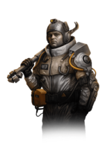 Боевой класс: офицер запаса. Специализация: командир. Особые приметы: облачён в бронескафандр «Штор-К». Вооружение: стальной кулак. Навыки экипажа: нулевое боевое братство (несменяемое), 2 навыка на выбор.