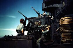 Часть экипажа USS Milwaukee, участвовавшая в передаче корабля советскому флоту. Крайний справа — лейтенант ВМС США Джек Райт