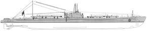 Торпедные аппараты располагались в носовой части, а 140-мм орудие - в корме. Ангар для хранения гидросамолёта (ГСМ) размещался перед боевой рубкой. Его размеры позволяли хранить ГСМ со сложенными крыльями. Пневматическая катапульта располагалась в носовой оконечности, что облегчало подъём ГСМ в воздух.
