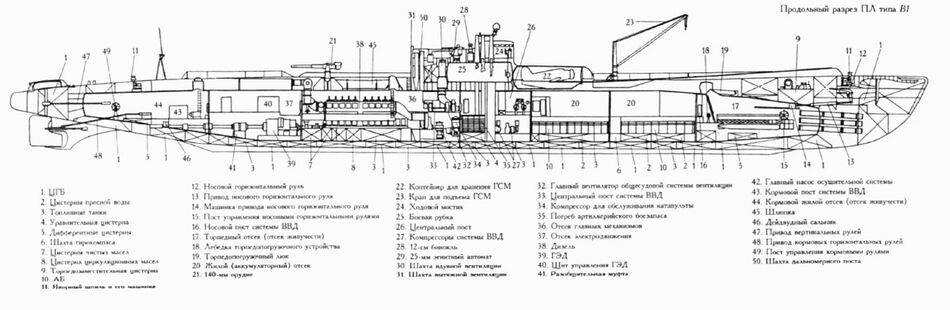 Экипаж подводных лодок типа B1 включал 101 человека.