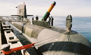 На вооружения ПЛ типа Collins имеются также 4 противокорабельные ракеты ПКР UGM-84B Harpoon. На этапе строительства рассматривался вопрос о приобретении крылатых ракет Tomahawk, запускаемых с подводных лодок, что дало бы ПЛ возможности атаковать наземные цели. Планы по приобретению УР Tomahawk или аналогичных ракет для наземного нападения оставались на рассмотрении до 2009 года. Впрочем, согласно документу Defending Australia in the Asia Pacific Century: Force 2030[2], вероятность вооружения ПЛ типа Collins ракетами Tomahawk остается весьма высокой.