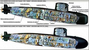Первая попытка построить во Франции многоцелевую атомную подводную лодку, предназначенную как для борьбы с подводными лодками, так и с надводными кораблями противника, была предпринята в 1957 г. Однако из-за технических трудностей строительство АПЛ тогда пришлось прекратить, а ее недостроенный корпус был использован для экспериментальной ракетной дизель-электрической подводной лодки Gymnôte, на которой ВМС Франции проводили испытания своих баллистических ракет.