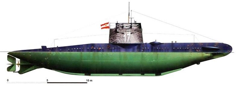 22 января 1915 | 29 января 1915 | Сразу после постройки, была доставлена в Пола по железной дороге. 4 июня 1915 года, лодка вошла в состав флота двуединой монархии как U-10. Передана Италии в рамках военных репараций, разделана на металл в Поле в 1920 году. | |||||
