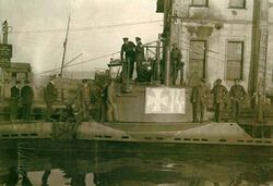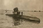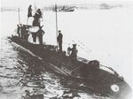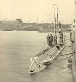 Немецкие матросы из учебной флотилии. Видна лодка типа UB I с треугольником на рубке. Это знак учебной флотилии.