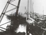 Подводная лодка SM UB-13 в разобранном виде перевозится по железной дороге, апрель 1915 года.