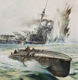 - ↑ Раффаэле Паолуччи и Раффаэле Россетти на управляемой торпеде Mignatta 1 ноября 1918 года произвели атаку на австрийскую базу Полу и потопили там дредноут SMS Viribus Unitis.