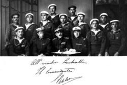 | Командир подразделения показал пример спокойствия и мужества в смелой атаке на морские коммуникации противника в далеком заливе Буккари. — Буккари, февраль 1918 года. |