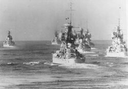 - ↑ В 7-ю дивизию входили крейсеры Emanuele Filiberto Duca d'Aosta, Muzio Attendolo, Raimondo Montecuccoli и Eugenio di Savoia