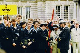 В 1996 году проходили настоящие торжества в немецком городе Киле по случаю 75-летия парусника. На борту нашего крупнейшего в мире парусного судна перебывало множество гостей: капитаны-ветераны и действующие капитаны-парусники, представители «СТА». На борту «Седова» были немцы, голландцы, финны, шведы.