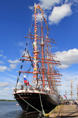 Барк «Седов»[1], учебное парусное судно, самый большой в мире парусник, так называемый, «wind jammer» (рус. «выжиматель ветра»). После постройки носил имя Magdalene Vinnen II, по имени жены владельца. В то время это был четвёртый по размеру парусник в мире. Как торговый корабль ходил в Южную Америку и Австралию. В 1936 году сменил владельца, получив имя Kommodore Johnsen, и стал учебным судном. Во время Второй мировой войны был мобилизован, занимался снабжением войск, став военным судном.
