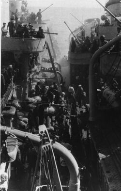 - отконвоировано 32 транспортных конвоя (59 кораблей) с находившимися на них 70000 человек и более 150000 тонн грузов, перевезено около 13000 солдат;