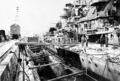 Вид с носовой надстройки на корму Prinz Eugen. Плавдок Бремена, лето 1945 г.