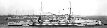 Горизонтальная защита состояла из двух броневых палуб: верхней и главной. Толщина верхней палубы изменялась от 25 мм на протяжении котельных отделений до 12-20 мм в остальных частях корпуса. Палуба прикрывала сверху пространство между 26-м и 167-м шпангоутами. Нижняя, броневая, палуба простиралась по всей длине 80-мм главного пояса и над 70-мм секцией в корме (от 6-го до 167-го шпангоута) и имела практически на всем протяжении толщину 30 мм. Исключениями являлись две небольшие зоны в нос и корму от барбетов крайних башен, где толщина увеличивалась до 40 мм. Далее в нос шли 20-мм листы. Горизонтальная часть палубы в районе цитадели и в корме проходила примерно на 1 м ниже верхней кромки пояса, а скосы той же толщины соединялись с его нижней кромкой. В районе тонкого носового пояса броневая палуба опускалась на уровень ватерлинии.