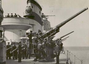 | Зенитное вооружение | 8 (8х1) 120-мм/45 Vickers-Armstrong Mk F 4 (2х2) 37-мм/80 SK C/30 4 (4х1) 20-мм/65 C/30 4 (4х1) 40-мм/39 QF Vickers pom-pom Mk II |