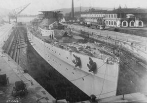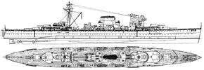 | * - постройку отменили в 1929 году, заложен не был; ** - на тот момент на корабль ещё не была установлена четвёртая башня главного калибра и крейсер был введён в строй без неё. Орудия установили лишь в июне 1937 года. | ||||||