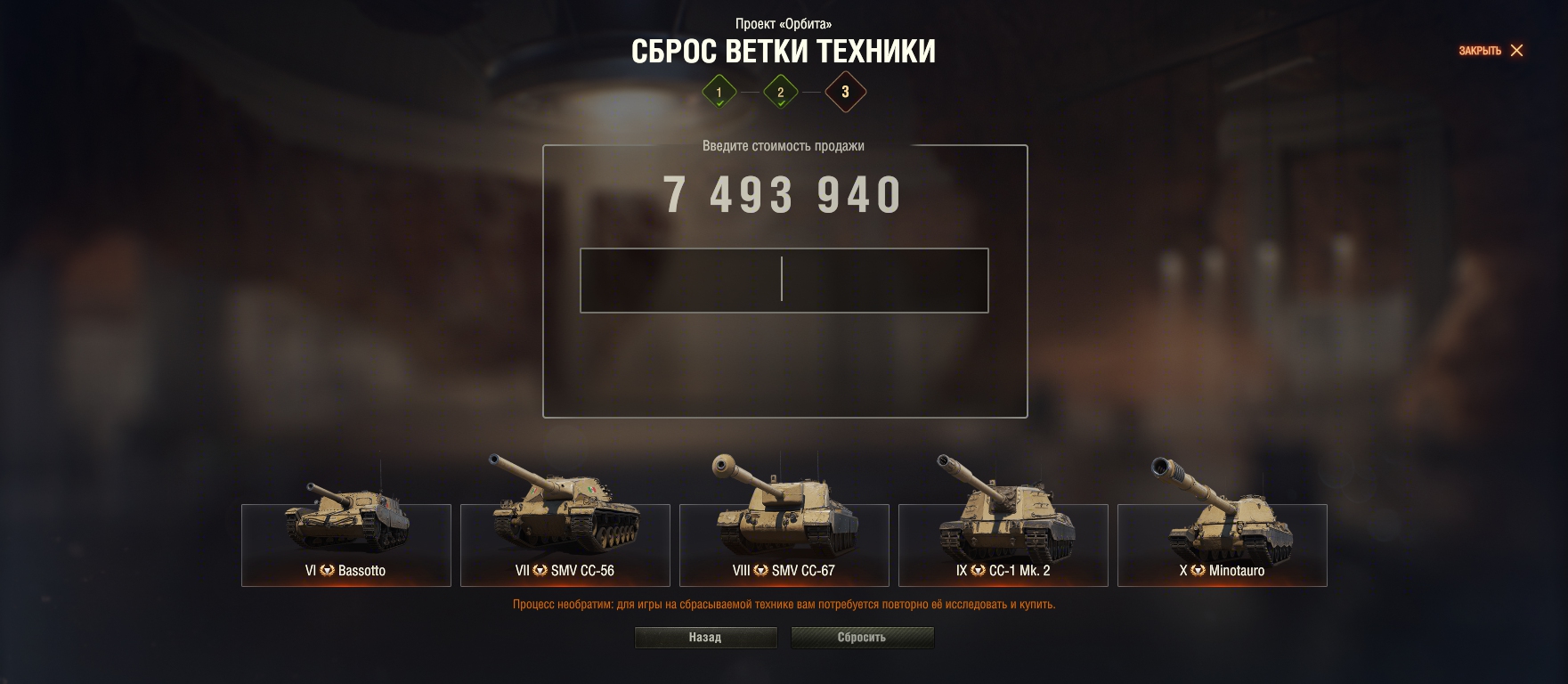 мир танков процесс сброса ветки в проекте орбита
