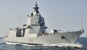 - ↑ FREMM (франц. Frégate Européenne Multi-Mission; итал. Fregata Europea Multi-Missione)
