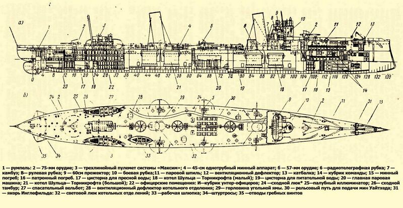 Эскадренный миноносец «Эмир Бухарский». Схема |