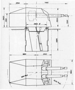 Схема двухорудийной 150-мм/48 башни эсминцев типа 1936A/1936A (Mob).150-мм башня эсминца Z-39.150-мм башня эсминца Z-39.