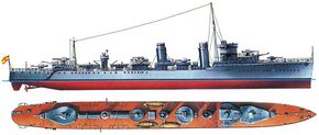 | Churucca | борт. литера CH, с 1952 г. борт. № 33, с 1961 г. D 13 | 25.05.1927 | SECN, Картахена | 28.01.1929 | 20.07.1929 | 30.05.1931 | Принимал активное участие в гражданской войне в Испании. Состоял в республиканском флоте. Исключён из состава флота 29.10.1963 |