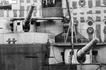 - ↑ 17 cm - калибр орудия в сантиметрах. В отличии от остальных стран, имеющих калибр орудия в дюймах, в Германии использовалась метрическая система мер и весов. SK - Schnellkanone - «скорострельное орудие». L(L/45) - Lange - «длина». Длина ствола в калибрах.