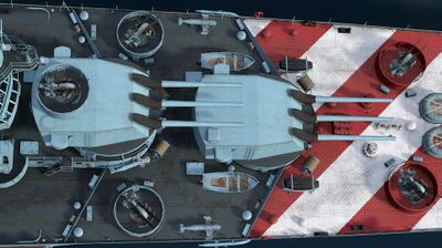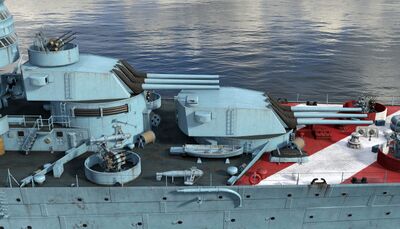 - башни разбиты на группы (носовую и кормовую) с управлением огнем из кормовой и возвышенной башен;