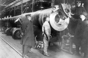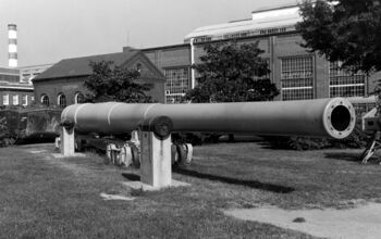 - 406-мм/50 орудие Mark 3 Mod.1 №138 на испытательном полигоне в Абердине, штат Мэриленд.