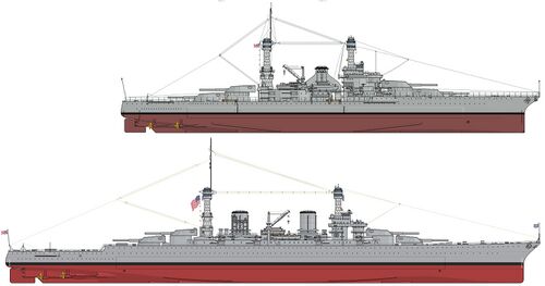 Размещение двенадцати 406-мм орудий в четырех трехорудийных башнях при 23-узловой скорости требовало водоизмещения около 40 000 т и длины 210 м. В ноябре 1916 года в качестве главного калибра для будущих кораблей были выбраны новые 406-мм орудия Мк.2 с длиной ствола 50 клб. Разница в водоизмещении при этом составила всего 500 т. Угол возвышения стволов был увеличен до 40". Толщина броневого пояса оставалась на уровне предыдущих проектов - заводы Соединенных Штатов просто не могли производить броневые плиты толще 343 мм надлежащего качества.