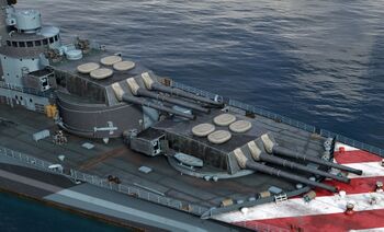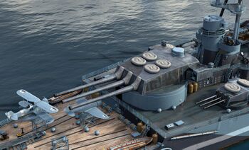 - Носовые башни ведут огонь под командованием второго артиллерийского офицера с использованием ЦАС или вычислителя башни №2, кормовая башня стреляет под командованием старшего артиллерийского офицера с помощью башенного вычислителя;