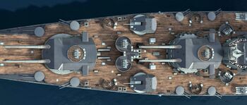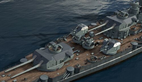 12. Башни 380-мм орудий линейного корабля SMS Bayern при вступлении в строй имели углы вертикального наведения - -8°...+16°. После Ютландского сражения их изменили до -5°...+20° и SMS Baden вступил в строй с такими углами, установки линейных крейсеров типа Mackensen и типа Ersatz Yorck также были переделаны.