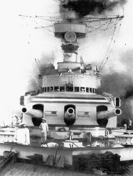 Несмотря на то, что выбор главного калибра был сделан с учётом Версальских ограничений, орудия были новой модели, разработки 1928 года. На носу и на корме располагались две трёхорудийные башни с орудиями 283-мм/52 SKC/28. В боекомплект входили три типа снарядов – бронебойный (2,6% взрывчатого вещества), фугасный с замедлением (полубронебойный, 5,65% ВВ) и чисто фугасный (7,8% ВВ). Все снаряды весили одинаково – 300 кг. Стандартный боезапас – от 315 до 360 снарядов на башню (105-120 на ствол), равное число боеприпасов каждого типа.