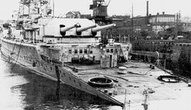 4 мая 1945 года Lützow оставлен и подготовлен экипажем к затоплению. Оба орудия ГК 280-мм были приведены в негодность. Корпус был забит оставшимися артиллерийскими боеприпасами для уничтожения внешней обшивки.