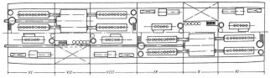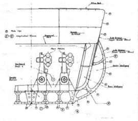 Энергетическая установка занимала 6 отсеков, с VI по XI. Общая длина машинных отделений составляла свыше трети длины судна (61,5 м). Двигатели, находившиеся в двух ближайших к носу отсеках, вращали правый вал, а в ближайших к корме — левый, всего по 4 мотора на вал. Соединялись они при помощи зубчатых передач фирмы Vulcan и муфт, размещавшихся в отсеках VII и IX соответственно у левого и правого бортов. Вспомогательные дизели устанавливались по одному в тех же моторных отсеках, что и главные. Кроме того, в каждом моторном отсеке имелось по 2 дизель-генератора. Отдельные моторы приводили в действие рулевой привод.
