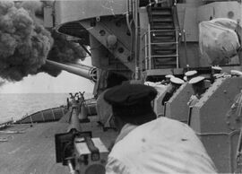 Залп из орудий ГК.