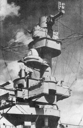 Для действий ночью предусматривалось командование кораблем со специального мостика, расположенного над командирским. Там были сосредоточены специальные просветленные морские бинокли и перископы, а поскольку при ночной стрельбе главным фактором являлась быстрота реакции, то тут же находились два дополнительных поста управления огнем, имевших упрощенное оборудование, но позволявших вести дистанционную стрельбу главным калибром. На том же мостике, в передней его части, помещался директор управления прожекторами и два целеуказателя для стрельбы осветительными снарядами.