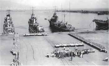 - ↑ Бывший Littorio, переименованный 30 июля 1943 г. в связи с падением фашистского режима.