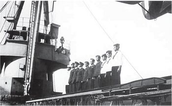- ↑ После фактического раскола Италии адмирал Карло Бергамини был посмертно представлен к Золотой медали за воинскую доблесть сразу обеими сторонами: и сотрудничавшим с союзниками правительством маршала Бадольо, и оказавшимся под фактическим контролем немцев руководством Итальянской Социалистской республики во главе с Муссолини (так называемая «республика Сало»). Последнее объявило, что командующий вел флот не для сдачи союзникам, а на интернирование в Испанию.
