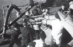 В первые месяцы 1941 г. на торпедных аппаратах установили щиты для защиты их наводчиков. .