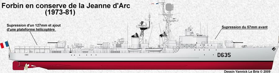 С 1 марта 1972 года по 1 июня 1973 года Forbin находился в резерве. Одновременно с этим корабль был модернизирован и частично перевооружен для сопровождения крейсера-вертолетоносца Jeanne d'Arc. У Forbin сняли одну носовую 57-мм и одну кормовую башню 127-мм, разместив на её месте вертолётную площадку. Кроме того, на эсминце оборудовали помещения для офицеров-стажёров.