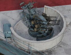Спаренные установки имели углы горизонтального наведения ±120° от траверза, вертикального -10°...+80°. Скорость горизонтального наведения - 15° в секунду, вертикального - 25° в секунду. Штатный боекомплект состоял из фугасных (зенитных) снарядов - по 1200 патронов, весом 7,2 кг, на ствол. Начальная скорость 4-кг снаряда 850 м/с. Эффективные дальность - 7 500 м и досягаемость по высоте - 5 000 м.