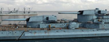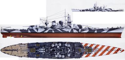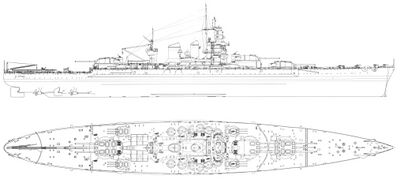 Вооружение | 16 (4×4) — 406-мм/50 орудий Model 1940 16 (8×2) — 120-мм/50 орудий «O.T.O.» M1950 24 (12×2) — 65-мм/64 орудие Model 1939 120 (20×6) — 20-мм/70 автомат «Scotti» Model 1941 |