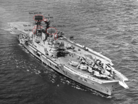 На момент ввода в строй HMS Ark Royal был оснащён РЛС ОВЦ type 960, а также радарами 2х type 982, 2х type 983, 3x type 275, 8x type 262, навигационной РЛС type 974. После модернизации HMS Ark Royal получил пару более скромных РЛС Type 965.