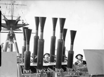 - ↑ Оригинальный фугасный снаряд HE Mark I имел взрыватель в носовой части корпуса снаряда, под баллистическим колпачком. Однако, из-за неудачной компоновки многие снаряды не взрывались. Снаряды были сняты с вооружения в 1943 году после того, как бомбардировка HMS Rodney в Оране во время высадки в Северной Африке выявила эти проблемы. Более поздний фугасный снаряд имел улучшенную твердотельную форму без обтекателя и с новым ударным взрывателем в головной части. Новый снаряд не изменил обозначение.