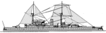 При этом массивная бронированная носовая башня выделялась над низкобортным корпусом, чуть возвышаясь над палубой за счет надстройки с барбетом. Башня главного орудия 280 мм, барбет 280 мм. Броневого пояса как такого не было.