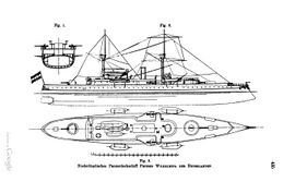 В носовой части на надстройке была установлена бронированная башня барбетного типа с орудием 280 мм. При этом толщина брони у башни также была 280 мм. Благодаря надстройке орудие было достаточно высоко над ватерлинией, чтобы вести стрельбу при плохой погоде. В корме размещалась защищенная орудийным щитом 210-мм орудие Круппа. В центре корпуса на каждом борту стояло по 170-мм орудию.