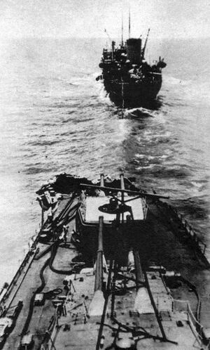 - ↑ Два транспорта ранее были по ошибке потоплены торпедами, выпущенными IJN Fubuki.